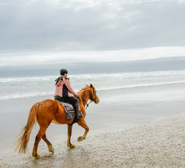 ‘For someone who doesn’t own a horse, this is the perfect opportunity to spend some quality time with a horse and ride in a way that is more than the standard 1.5-hour rides you get. From pick-up to drop-off afterwards, the adventure is filled with good quality food and accommodation, supportive staff, responsive horses, and a variety in riding. I loved that I could brush my horse, put his bridle on, and cuddle him. I came away falling in love with horses all over again and with a heart filled with memories I will treasure and rave about to anyone who listens!’