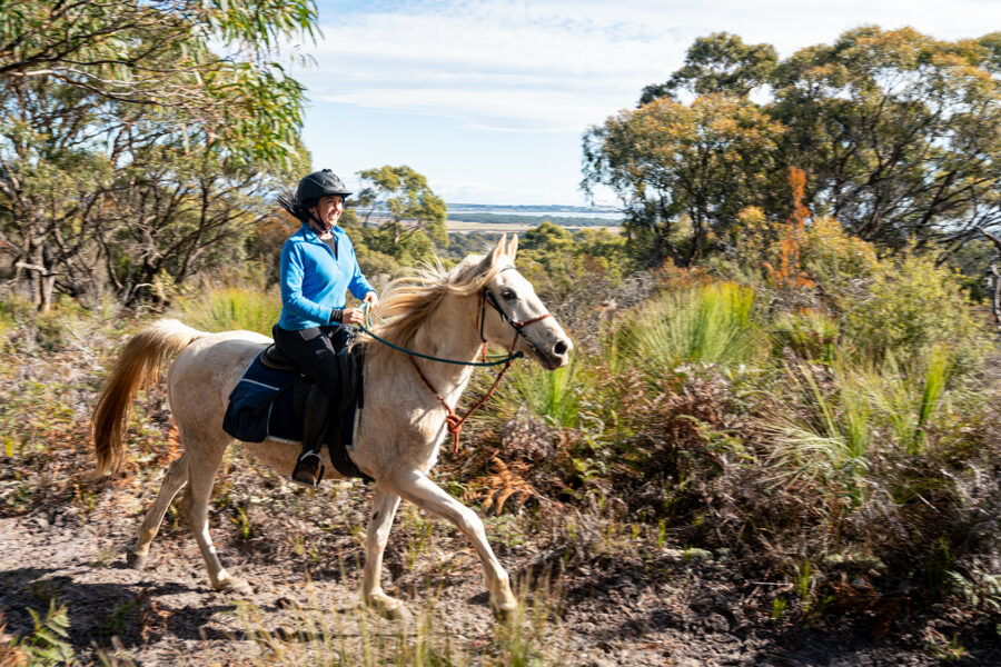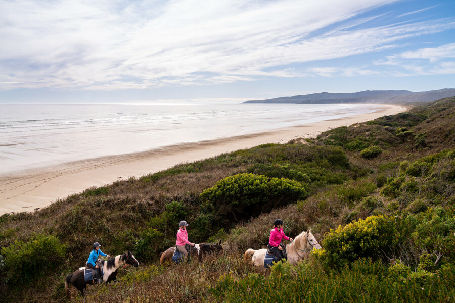 ‘The Tassie Ride was stunning. Absolutely loved the whole experience. Staying at Brickenden was fabulous, with the gardens so beautiful. Then, staying at the “off-grid” cabin at Bakers Beach was excellent. Loved the hot tubs and the afternoon soaks after a day’s riding. I rode Sonata and loved her. She gave me a wonderful ride and made me feel so safe. I loved the way she walked out, always wanting to be up front. A beautiful mare. The guides were amazing, very knowledgeable, great equestrians, and it was a pleasure to ride with each of them. Every day was fantastic, all a bit different but all so noteworthy. I can’t pick a favourite. Loved all the trails and scenery. Great rides, great guides, great horses, a great group of riders, great accommodation and great food. I can’t stop bragging about it and showing off photos. I look forward to booking the next Globetrotting ride.’