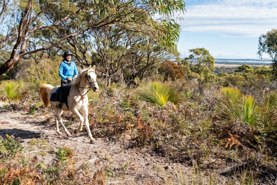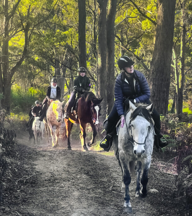 ‘I love the community I find on Globetrotting rides; this was my fifth Globetrotting trip! The Tassie Ride was a ‘short break’ for me. Nevertheless, it felt like an out-of-this-world experience. I rode a wonderful, oh-so-handsome, forward-moving, bold, kind horse in Graham (Percheron cross). Absolutely dedicated and lovely hosts and guides, who you wish lived next door to you. How do I keep meeting fantastic people on these rides? Always so different, and they become your friends—this time, in only a few days. We had lovely, relaxed rides through very pretty terrain, where you could just breathe in all that beautiful, pristine-scented air. I got this and lots of laughs too. The meals were fantastic; Tasmanian produce is really exceptional, and it was all so carefully prepared. I’ll be back!’