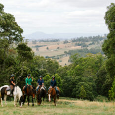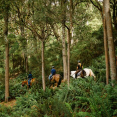 ‘The Tassie Ride is outstanding! The different scenery you ride through is beautiful: bush, forest, farmland and beach. Keep an eye out for wallabies. Though don’t worry if you keep missing them, there are plenty on the grasslands at Baker’s Beach. The guides are all so friendly, knowledgeable and supportive. And the horses are full of personality, forward and sensible. The accommodation at Brickendon is full of history, and then you have the contrast of modern luxury at Baker’s Beach. The outdoor baths are not to be missed—perfect after a day in the saddle. The food is next level. There is no chance of losing any weight on this ride. Big breakfasts to gourmet sandwiches at lunch, generous cheese platters to roast dinners—it’s Tasmanian produce at its finest. I rode the beautiful Tessa, who looked after me through the varied terrain and mixed weather that is Tasmania.’
